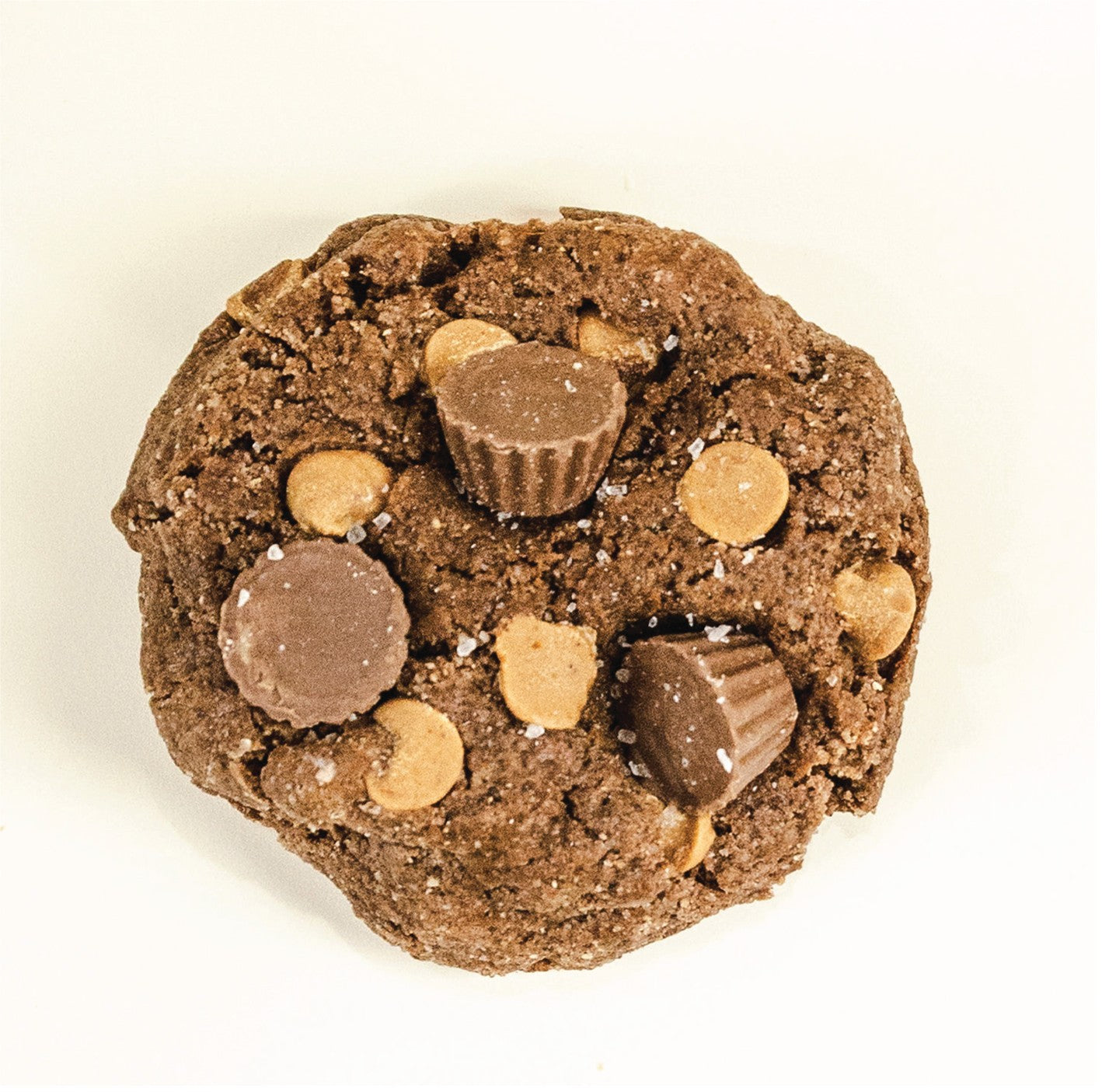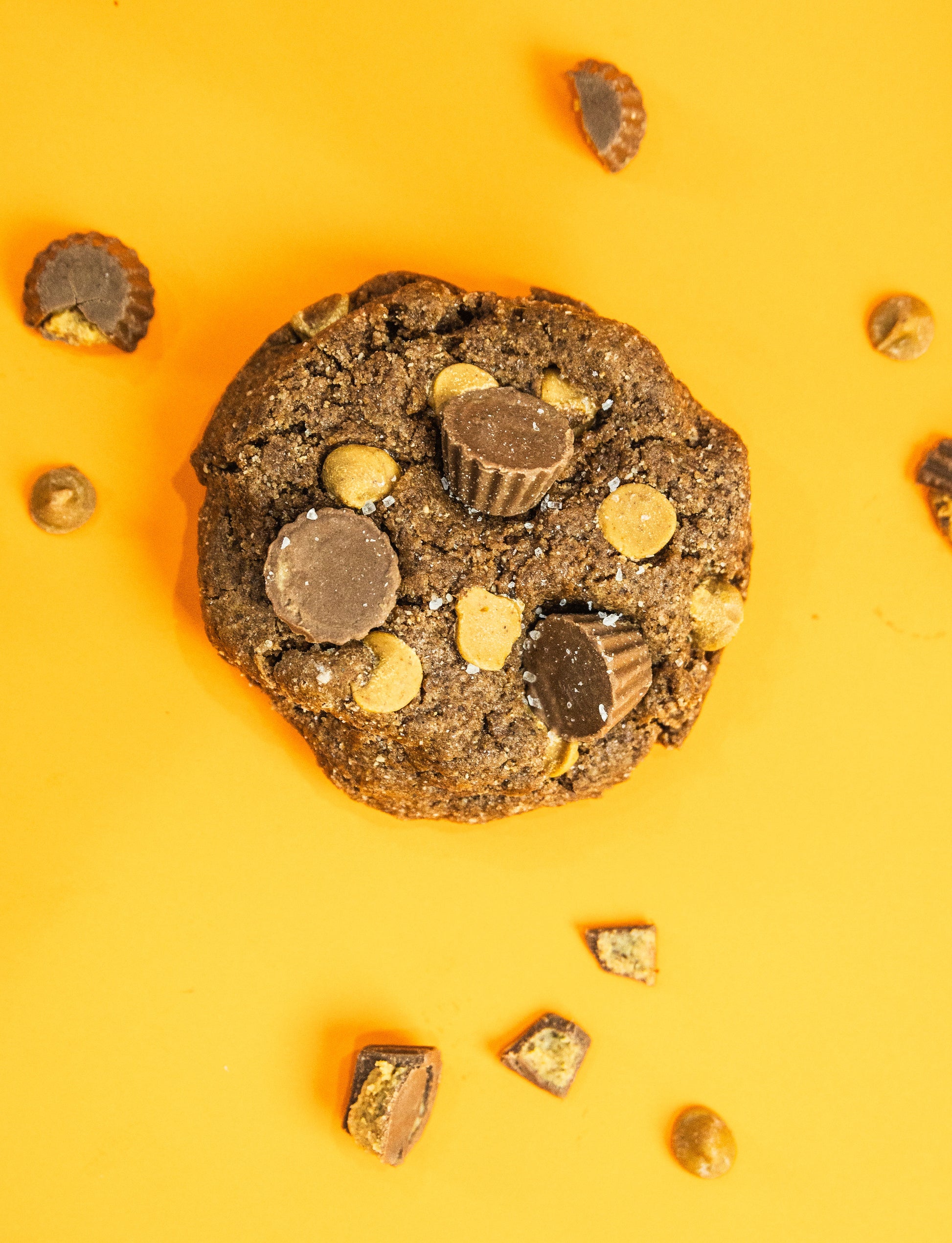 Chocolate based cookie with peanut butter chips is a perfect cookie to enjoy with mini reeses on top!